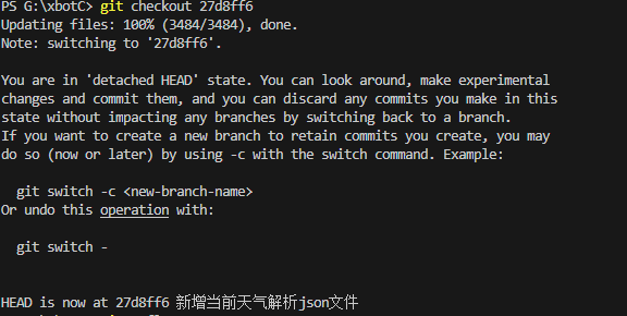 但是这里会提示,不允许切换,因为我之前的文件还没有保存提交,所以切换被拒绝了,不过我这些文件只是一些小修改,所以我直接清楚