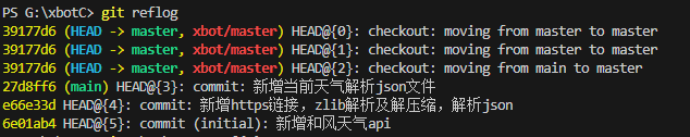 这里详细列出来了我的切换操作,可以看到我这里有一个误操作导致分支被切换了,输入